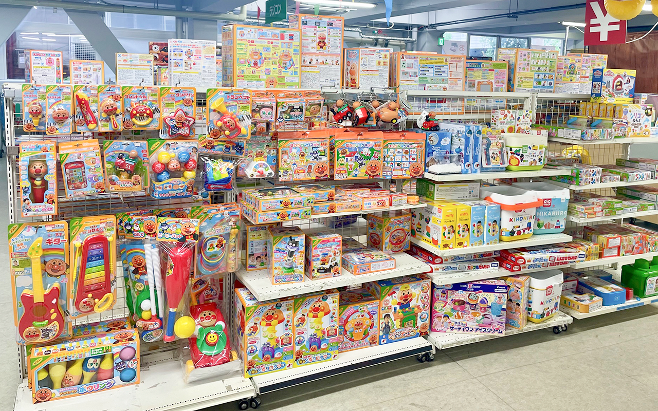 おもちゃと自転車の売場は、リフレッシュ工事に伴い、期間限定で第2パーキングイベントホールに移設して営業しております。取り扱い商品や品揃えのボリュームはこれまで通り!人気のキャラクター玩具や知育玩具、パズルやゲーム、知育玩具なども、変わらず幅広くラインアップしております。工事期間中も、どうぞ引き続き、第2パーキングイベントホールのおもちゃ・自転車売場をご利用くださいませ。