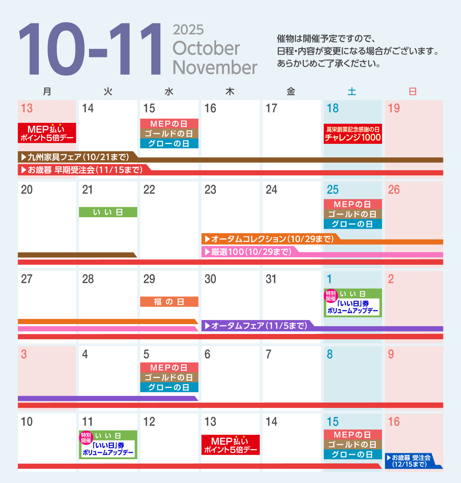 毎月1日・11日・21日に実施。当日ご来店にてお仕入れ合計1万円(税込)ごとに「いい日プレゼント交換券」を一枚進呈。集めていただいた枚数に応じて景品と交換いたします。